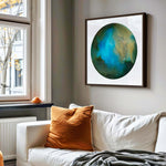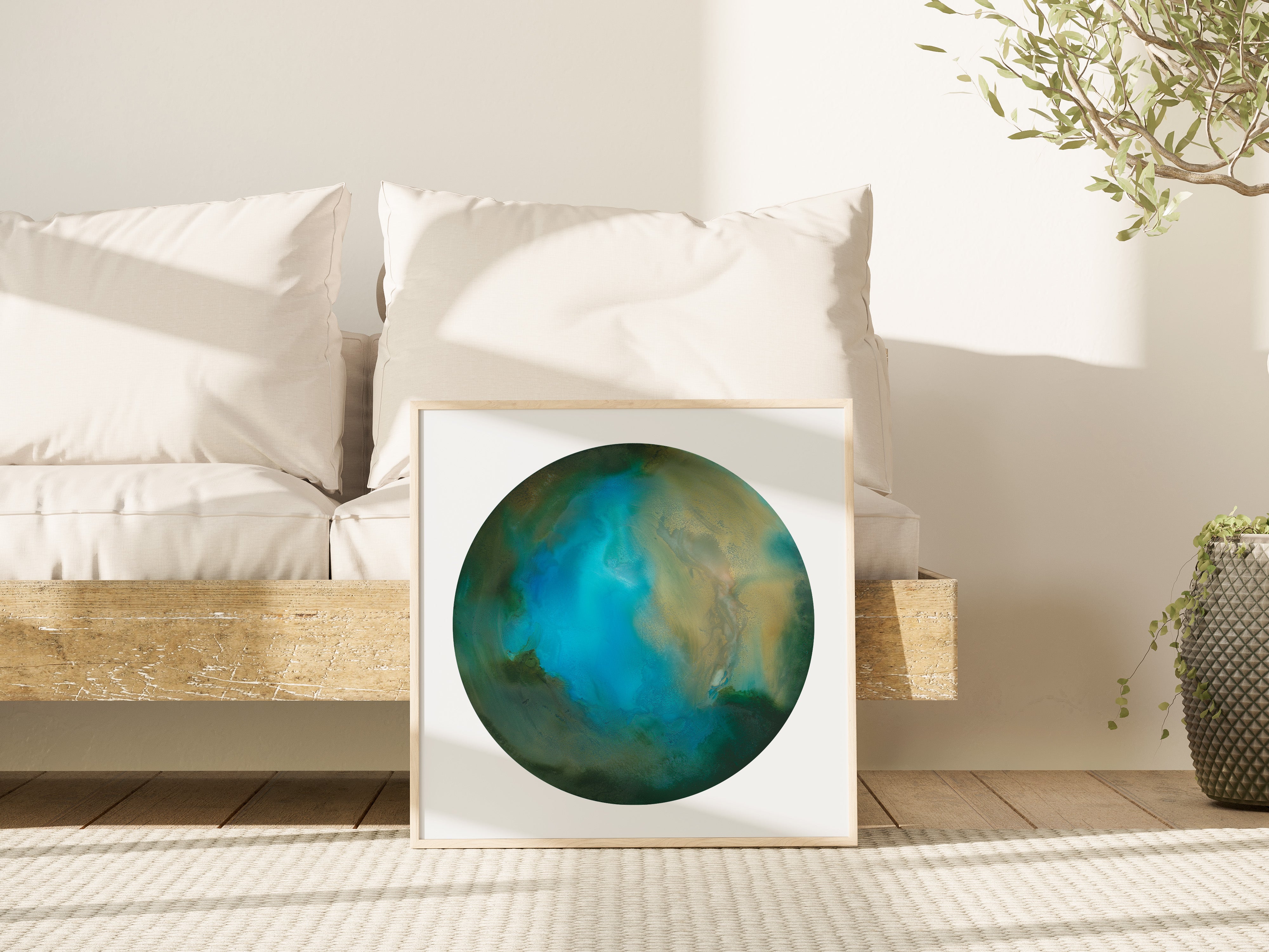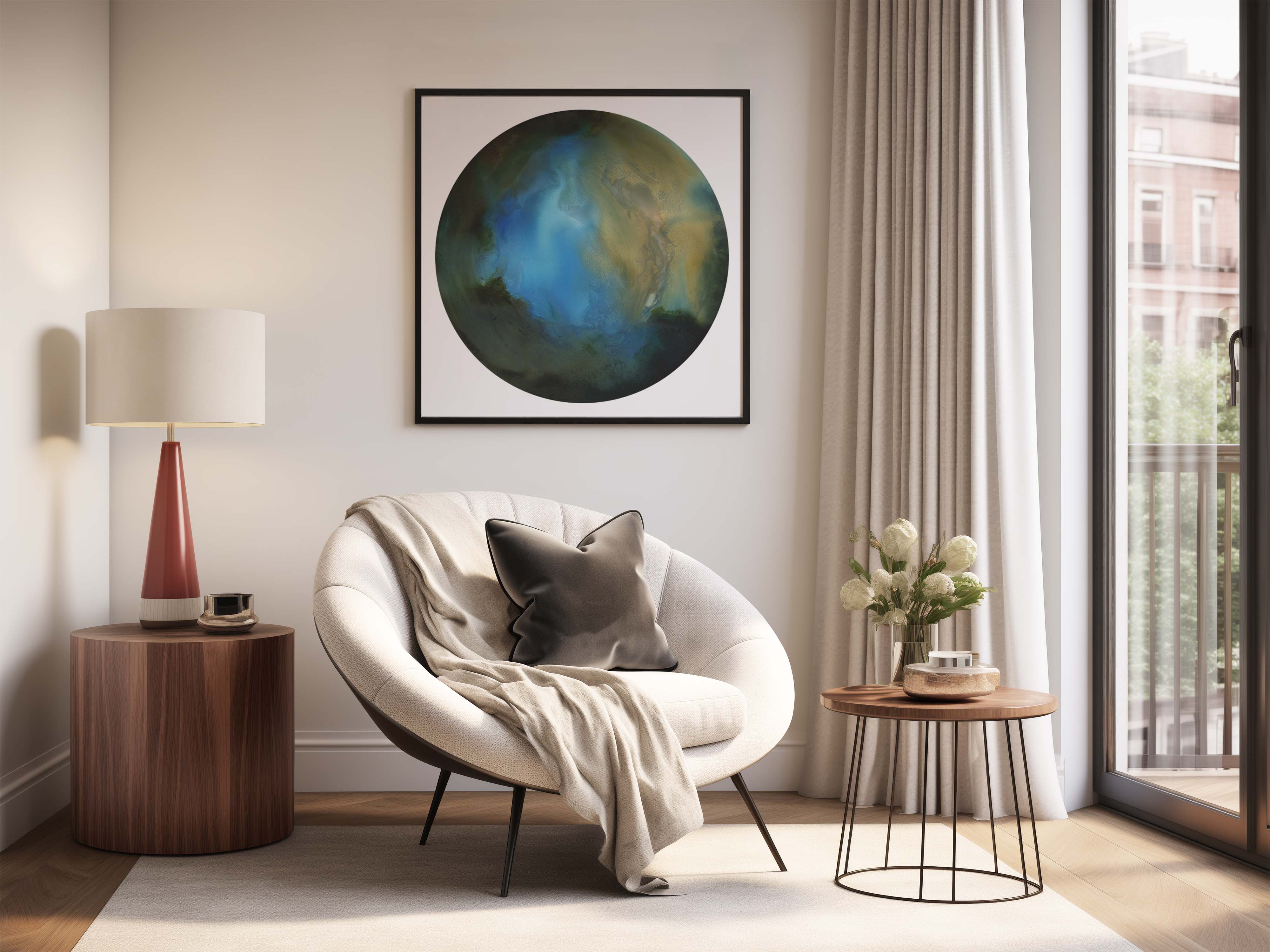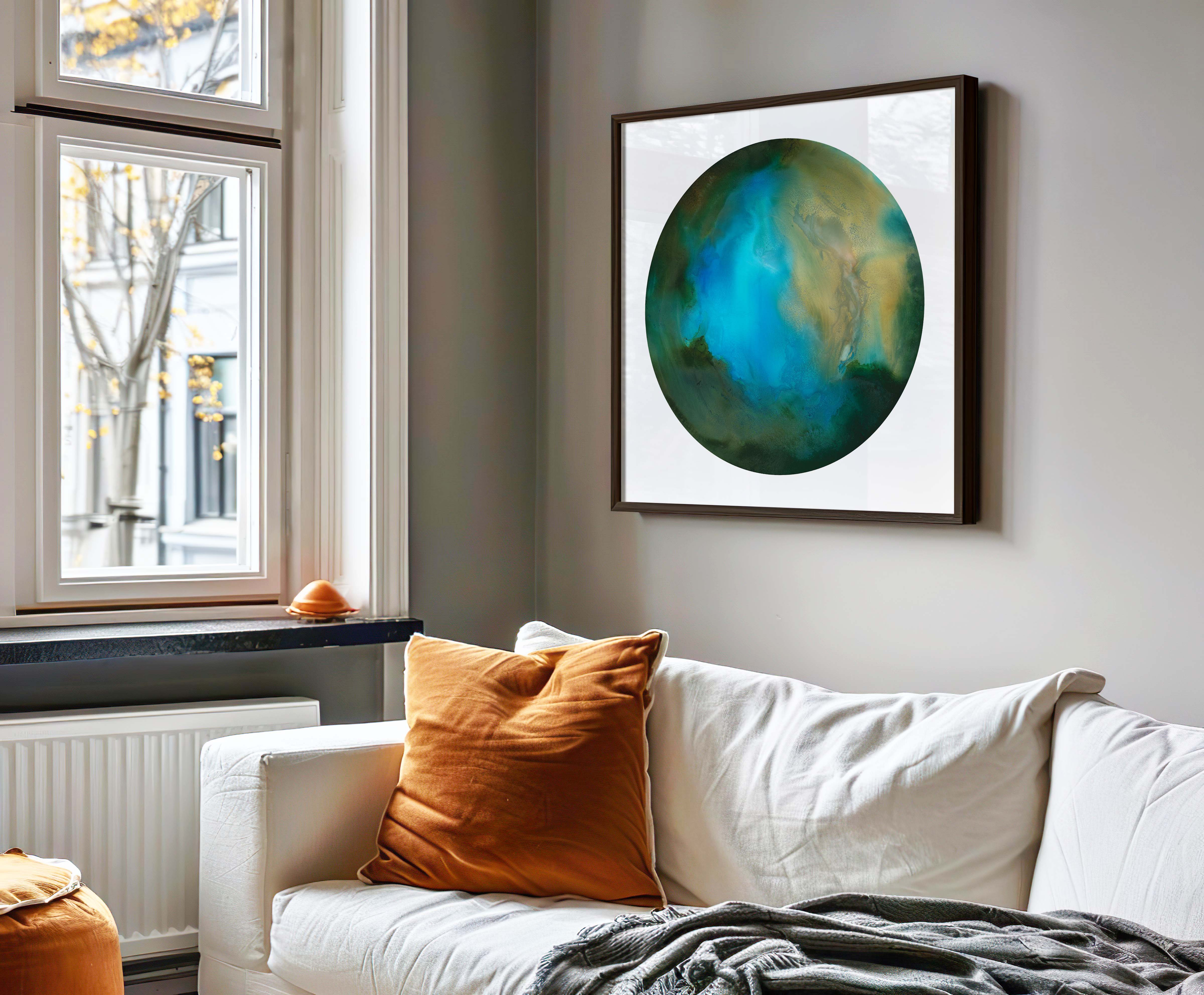 OASIS invites you to pause and savor the beauty of stillness. Deep greens evoke the calm of nature, while tranquil blues stretch like an endless sky, and a mellow orange adds a soft warmth, like the sun setting over a peaceful landscape. This piece radiates serenity, perfect for a bedroom or quiet reading nook. OASIS is more than decor – it’s a retreat, offering calm in the midst of a busy world