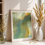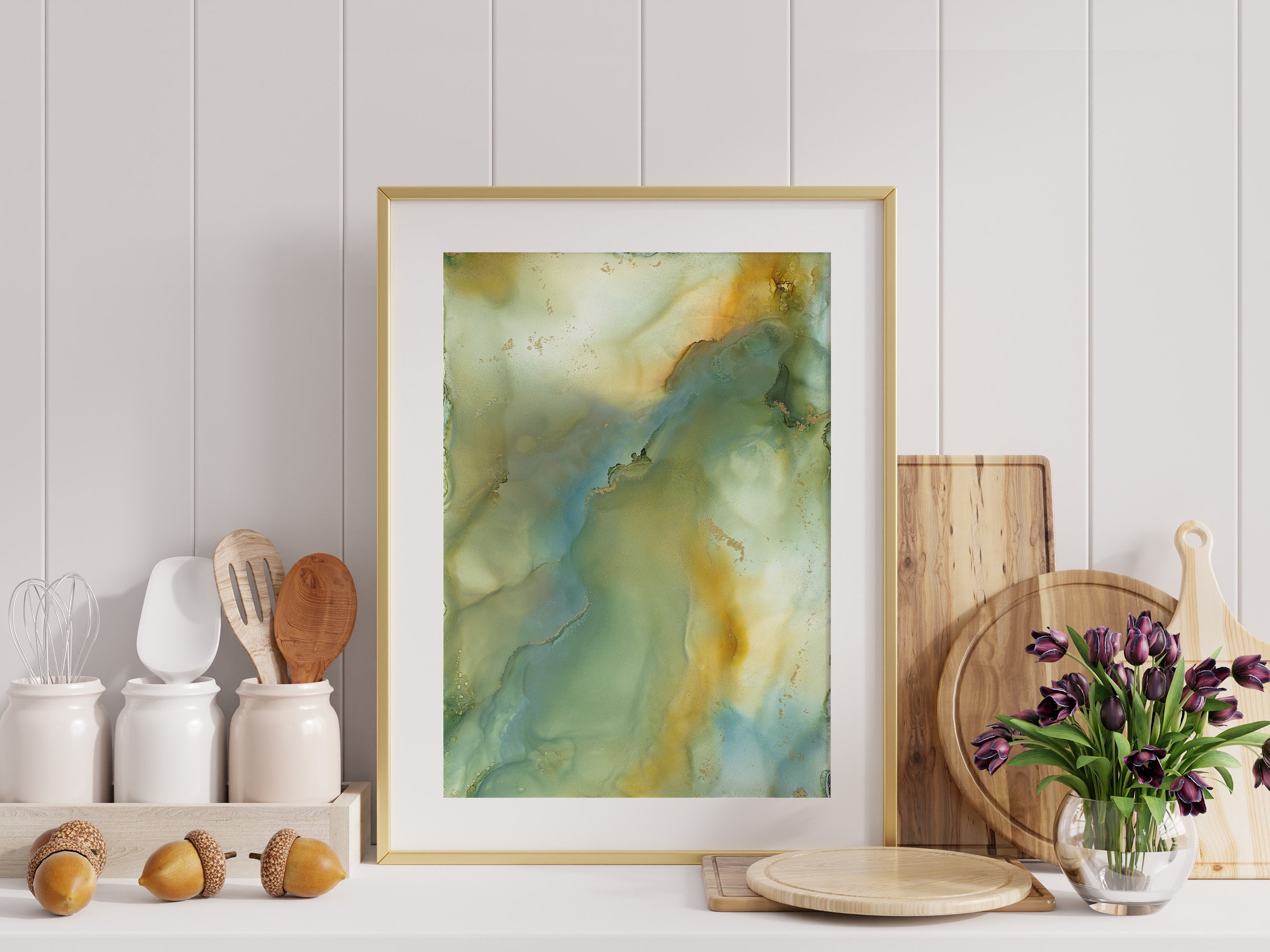 HEALING swirls with greens, blues, and soft yellows, offering a deep, introspective space. With its deeper, murky shades, this piece reflects the layered and sometimes complex process of healing. It invites you to sit with both the light and the shadow, finding peace in the contrast. Ideal for spaces of reflection and self-care, HEALING reminds you that even in the messiness of recovery, beauty and strength are emerging
