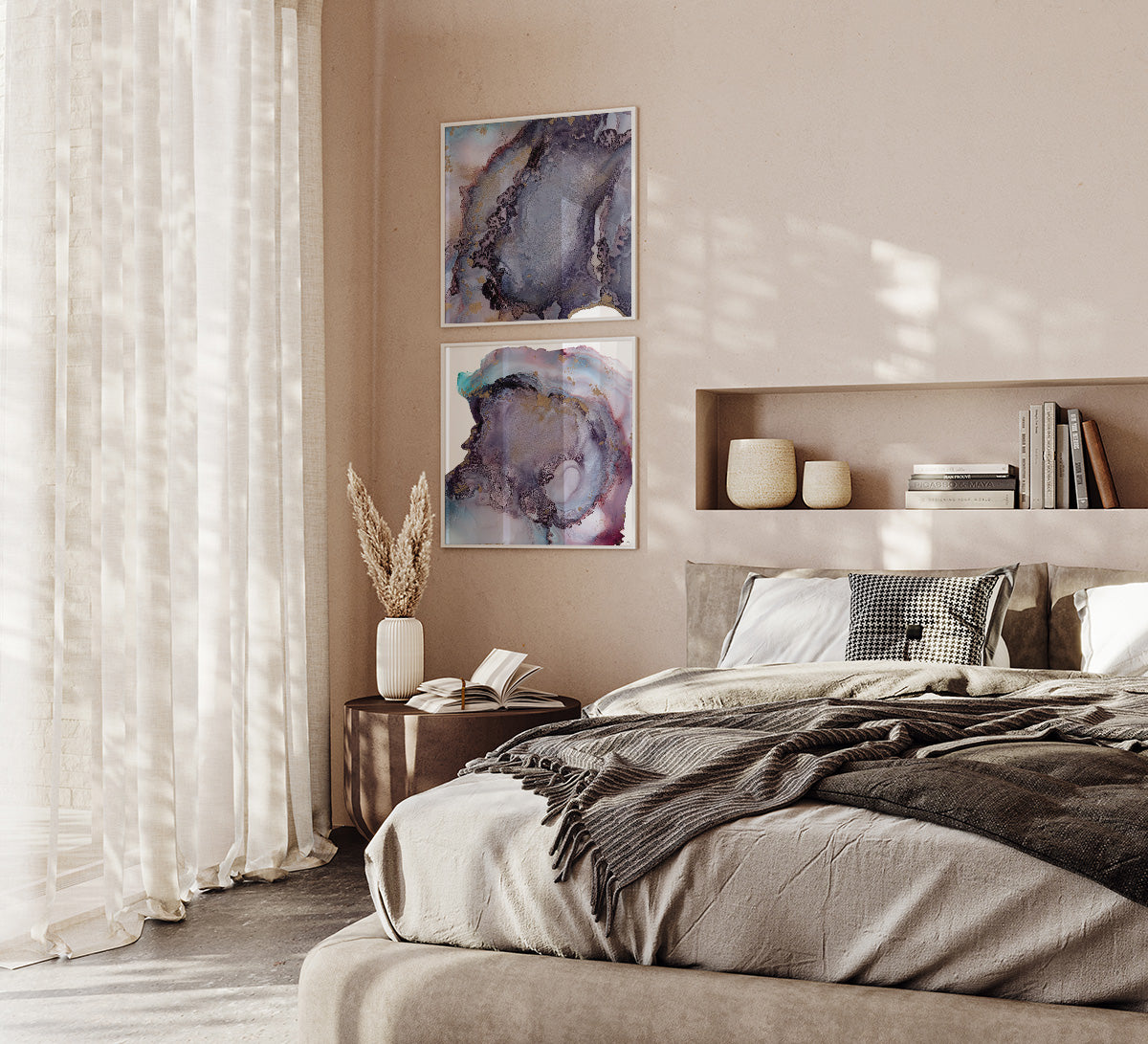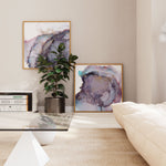 The IGNEOUS PAIR celebrates your personal journey through change and growth. IGNEOUS 1 captures the quiet beginnings with its blend of purples, greys, and soft reds, representing subtle transformations. IGNEOUS 2 symbolizes the momentum of growth with rich, earthy tones, showing how progress builds over time. Together, they reflect the balance between subtlety and strength, perfect for a living room or reflective space to remind you of your journey