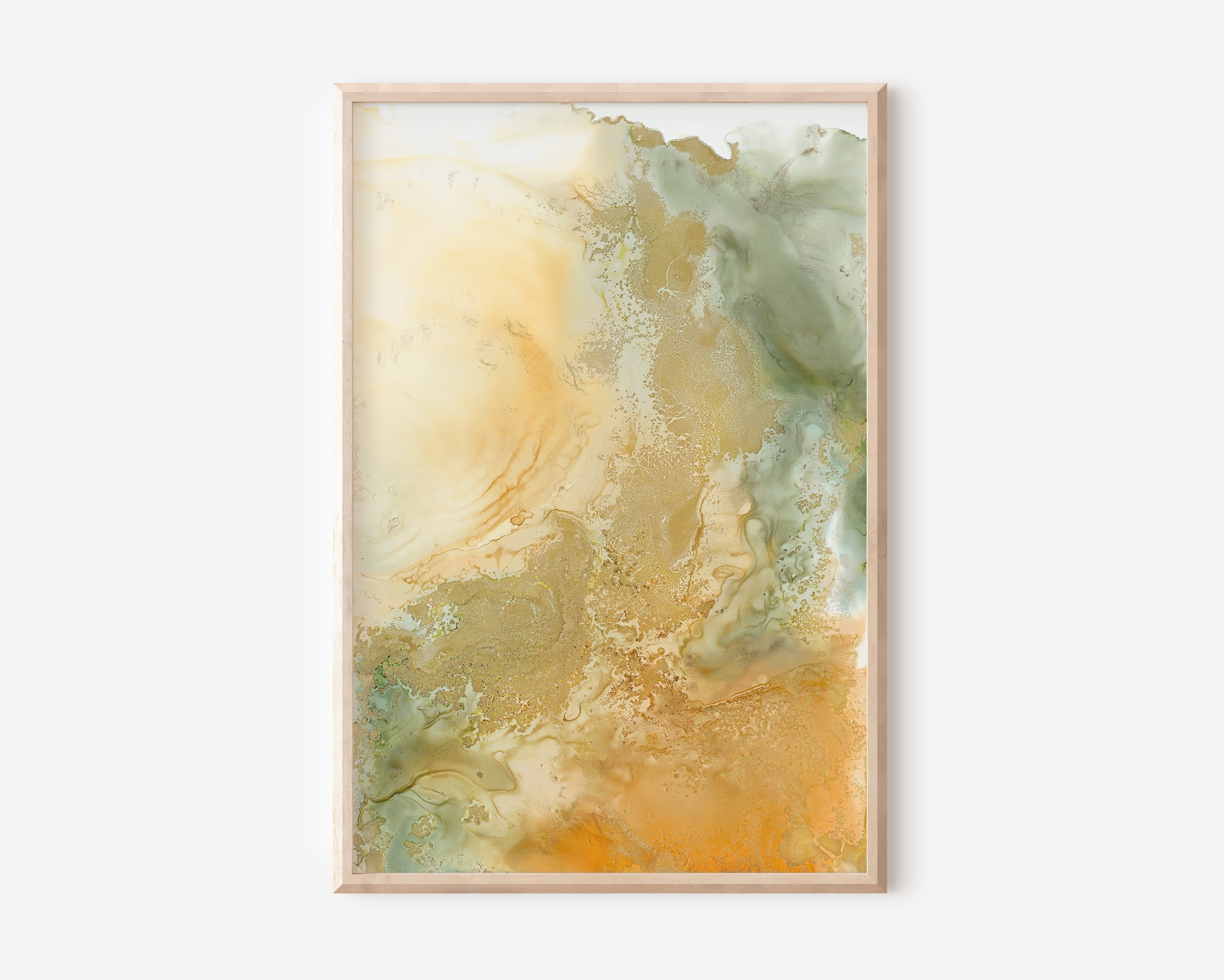 MOSS feels like new life unfolding in stillness—sage greens, warm ochres, and subtle golds layered like a forest floor after rain. It speaks to rooted growth: the kind that isn’t loud, but steady, returning you to yourself with every glance. Ideal for calm, reflective spaces such as a bedroom, hallway, or home office, MOSS adds depth and dimension while keeping the room serene. Let it anchor a gallery wall or stand alone as the quiet heart of your space.