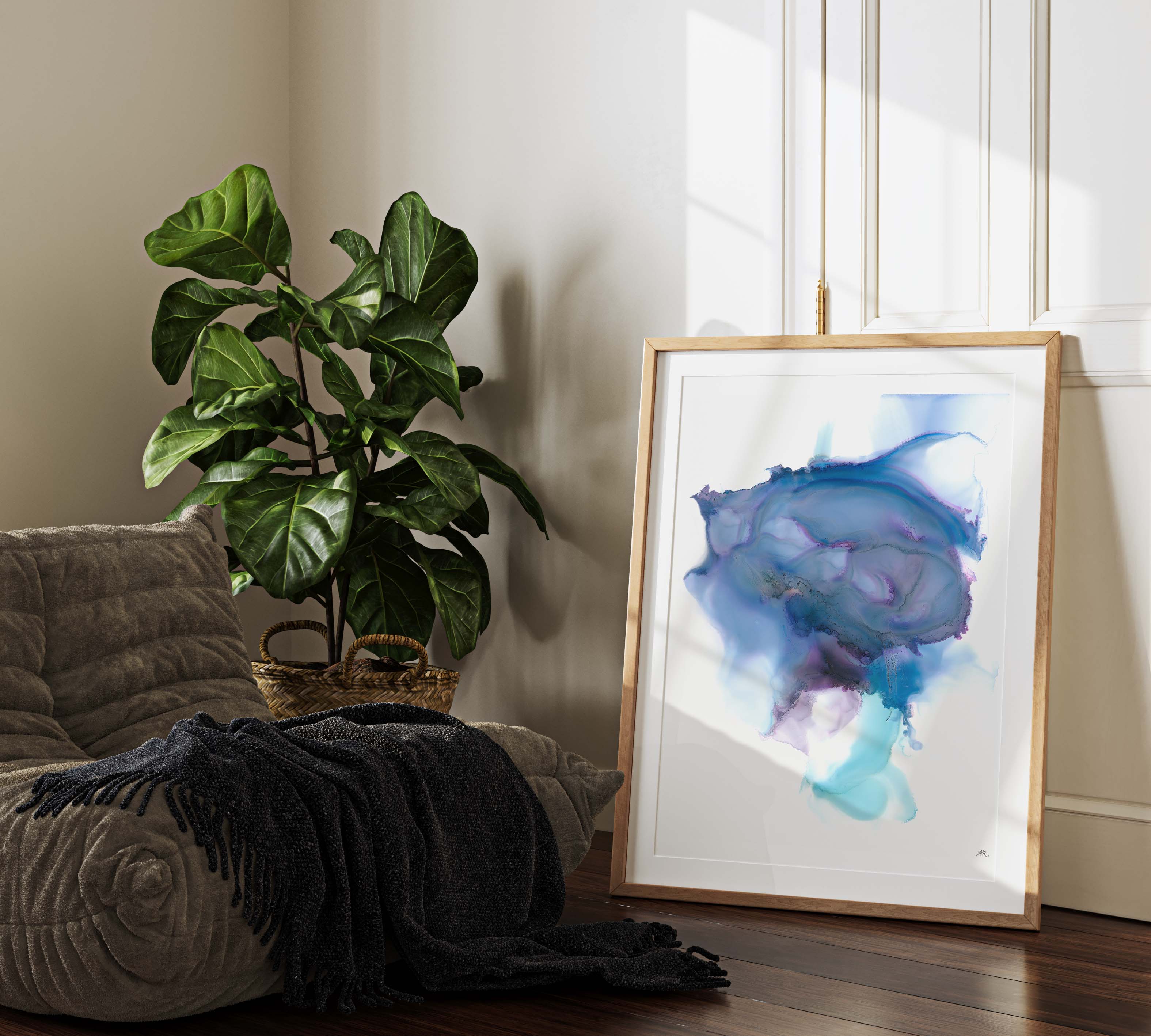 WONDER bursts with bold blues and vibrant turquoise, reflecting the dynamic flow of ideas and the joy of creative expression. Unlike the calm, reflective tone of its counterpart, this piece pulses with energy, sparking your imagination and fuelling your passion. Ideal for a studio or lively environment, it serves as a reminder to embrace your unique creativity and let your innovative spirit shine